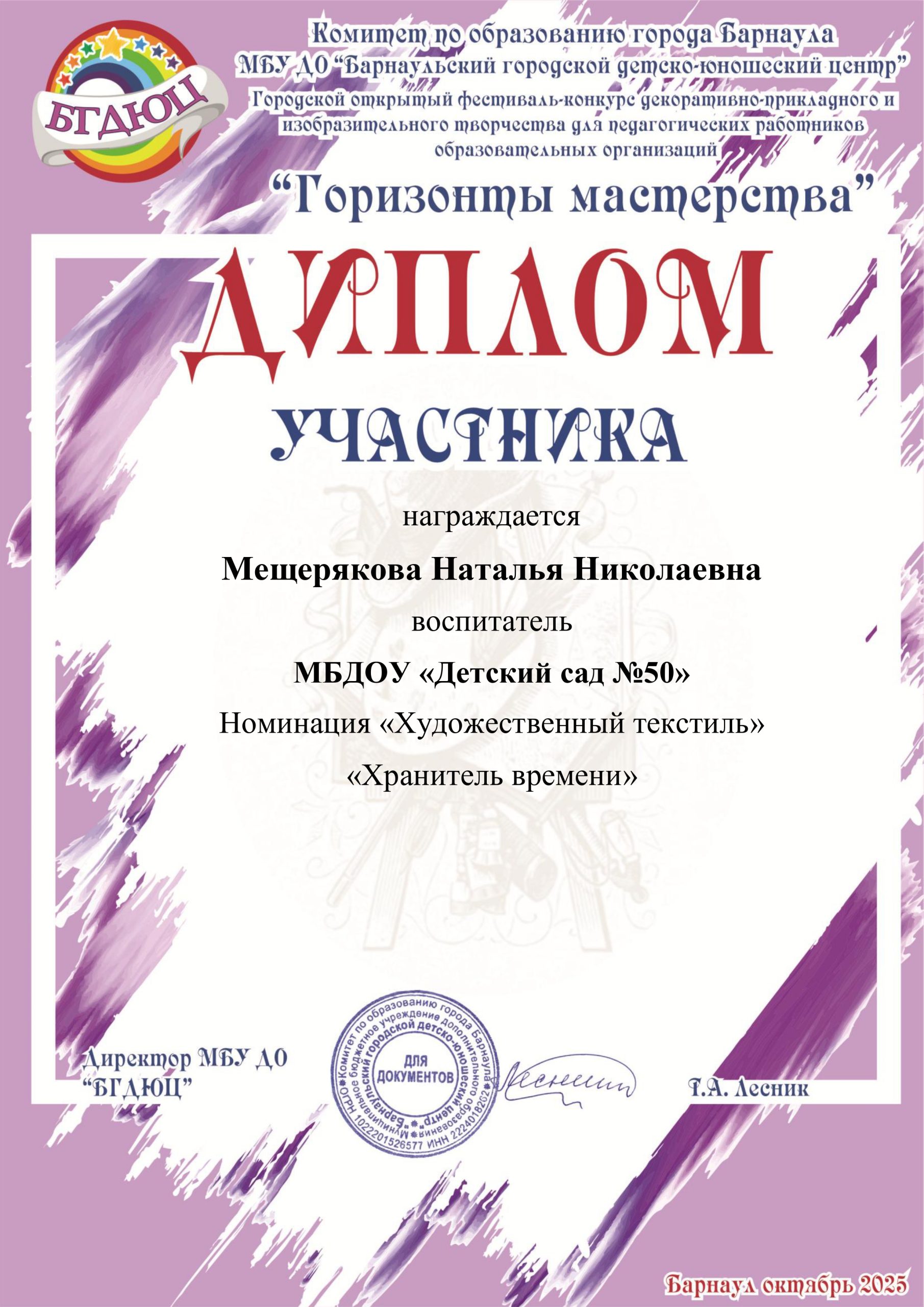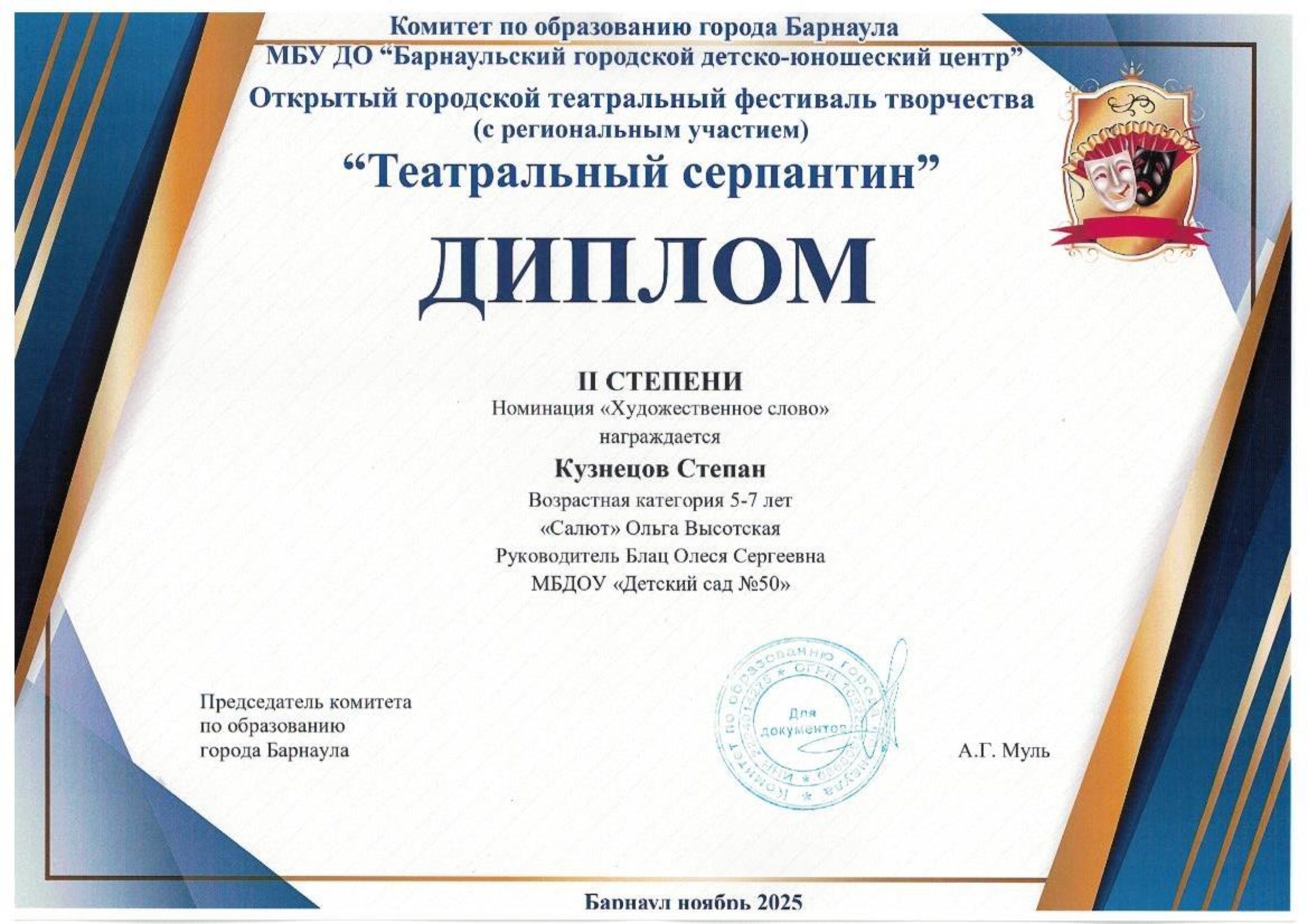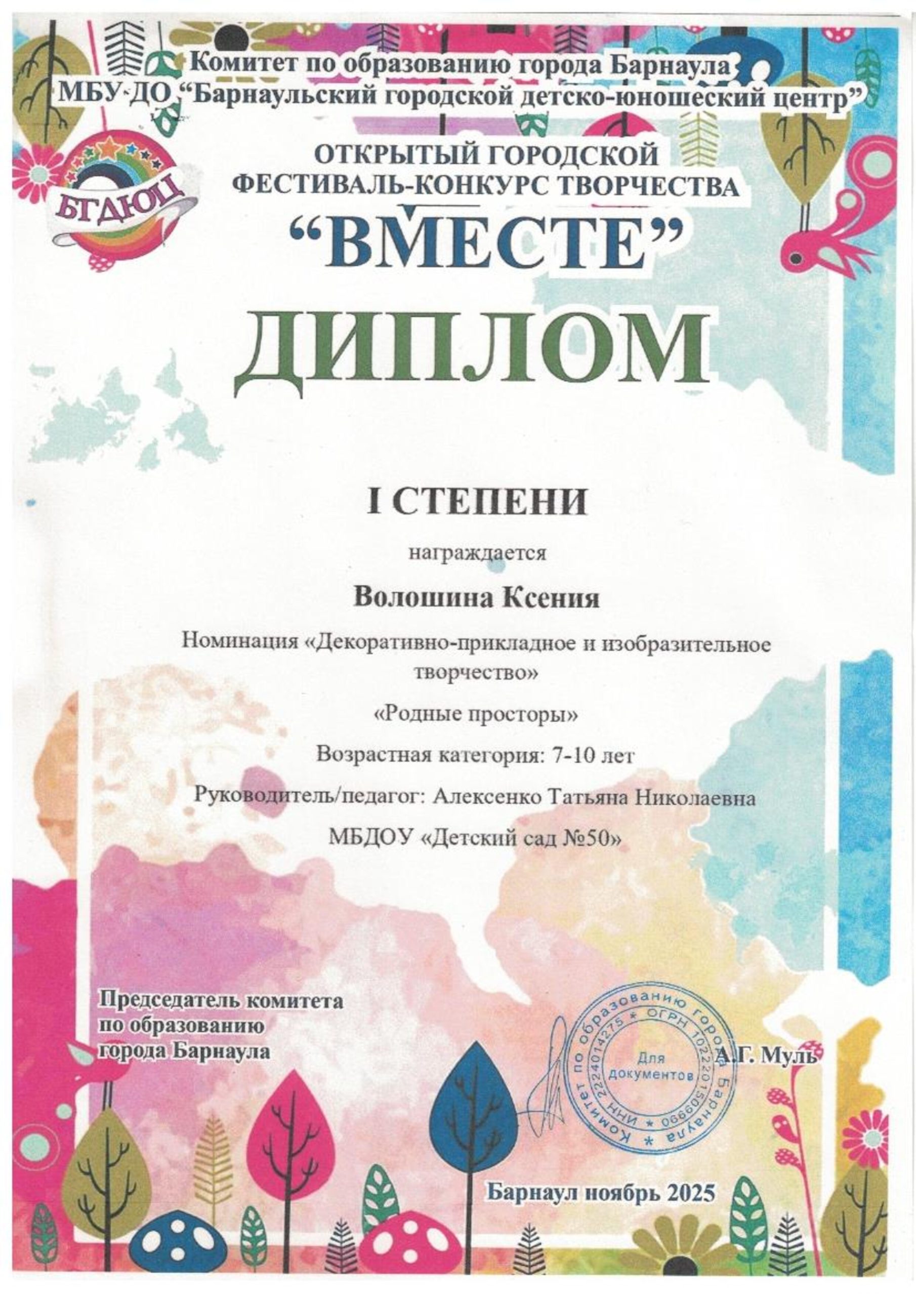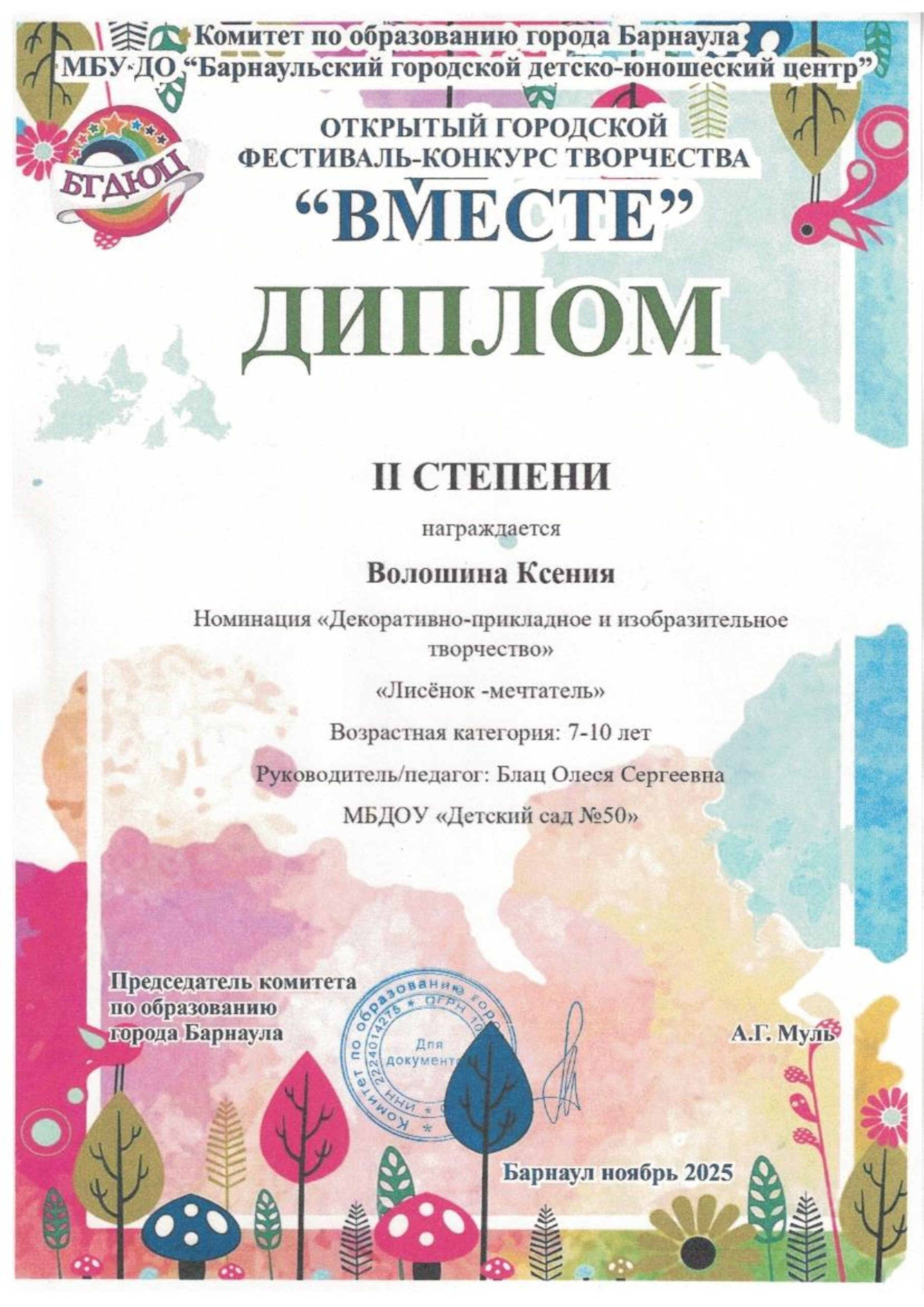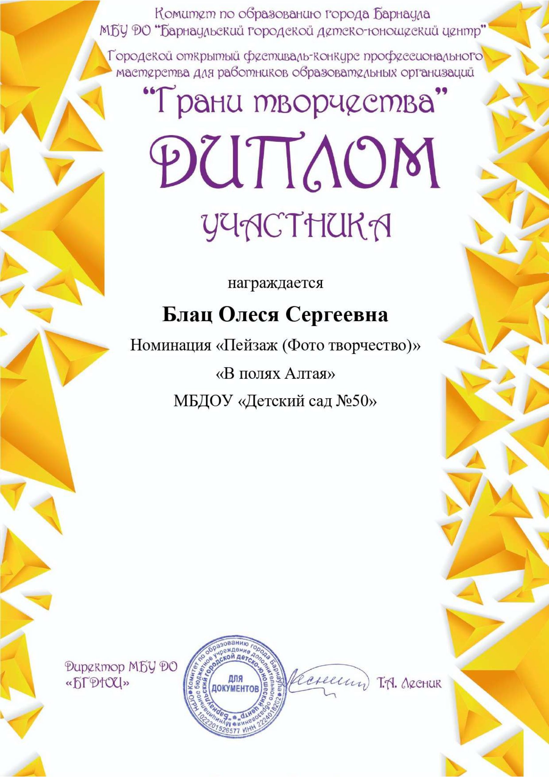 Благодарственное письмо за участие в фестивале